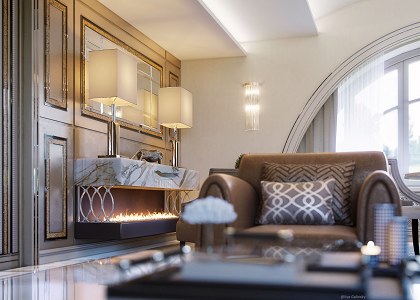 Visualization, as well as participation in the development of the concept of the interiors of a country house in the Art Deco style were , was made for the Architectural workshop of Velichkin and Golovanov.