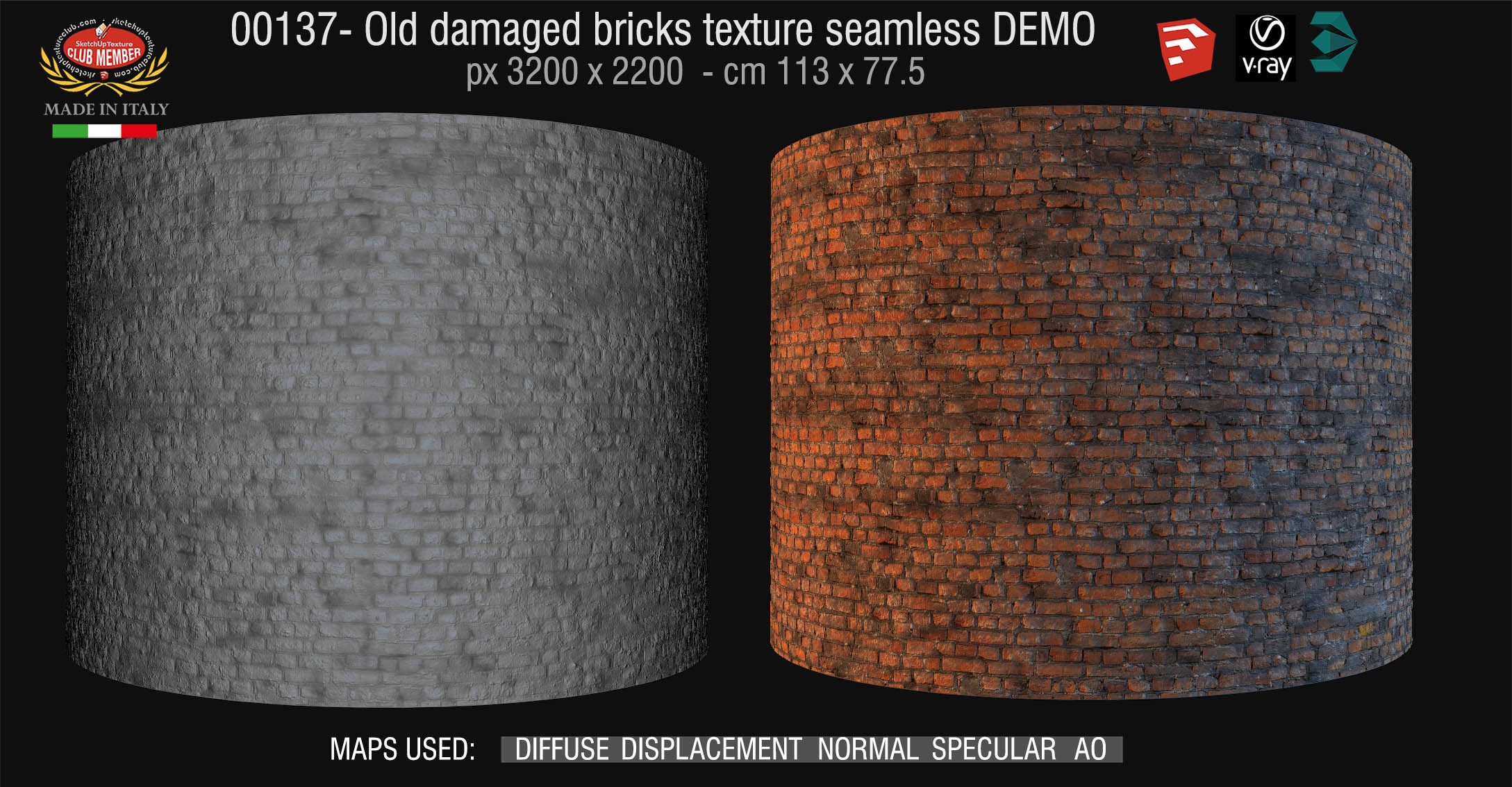 00137 HR Damaged bricks texture seamless + maps DEMO