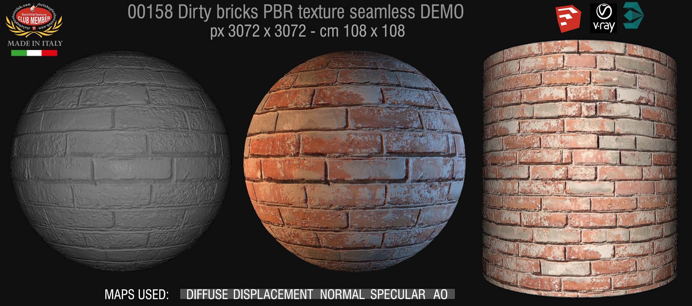 00158 Dirty bricks PBR texture seamless DEMO