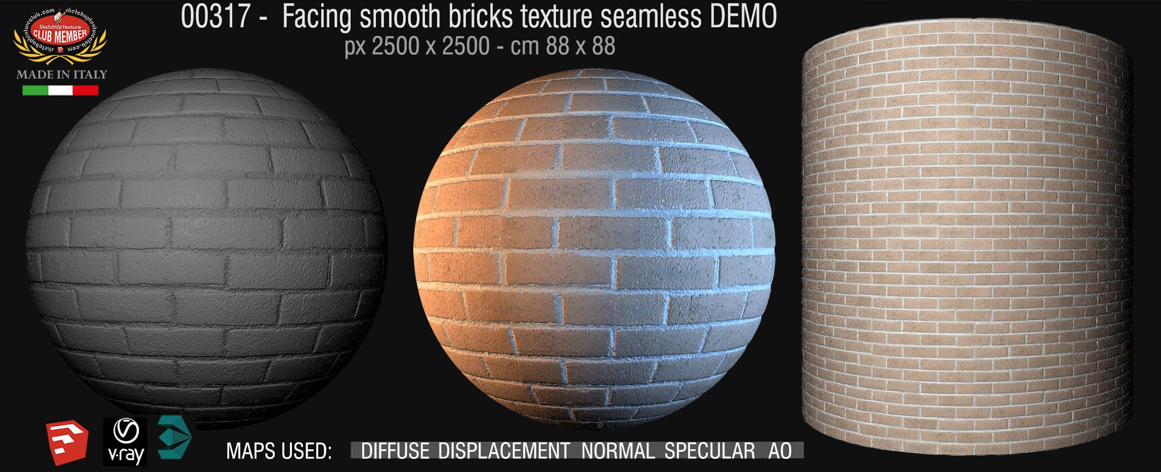 00317 Facing smooth bricks texture seamless + maps DEMO