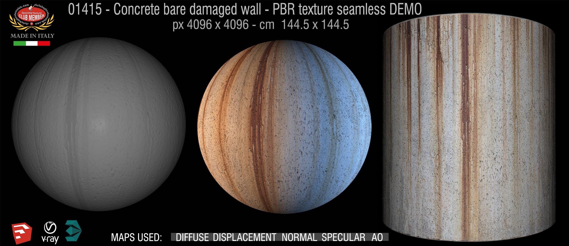 01415 Concrete bare damaged PBR texture seamless DEMO