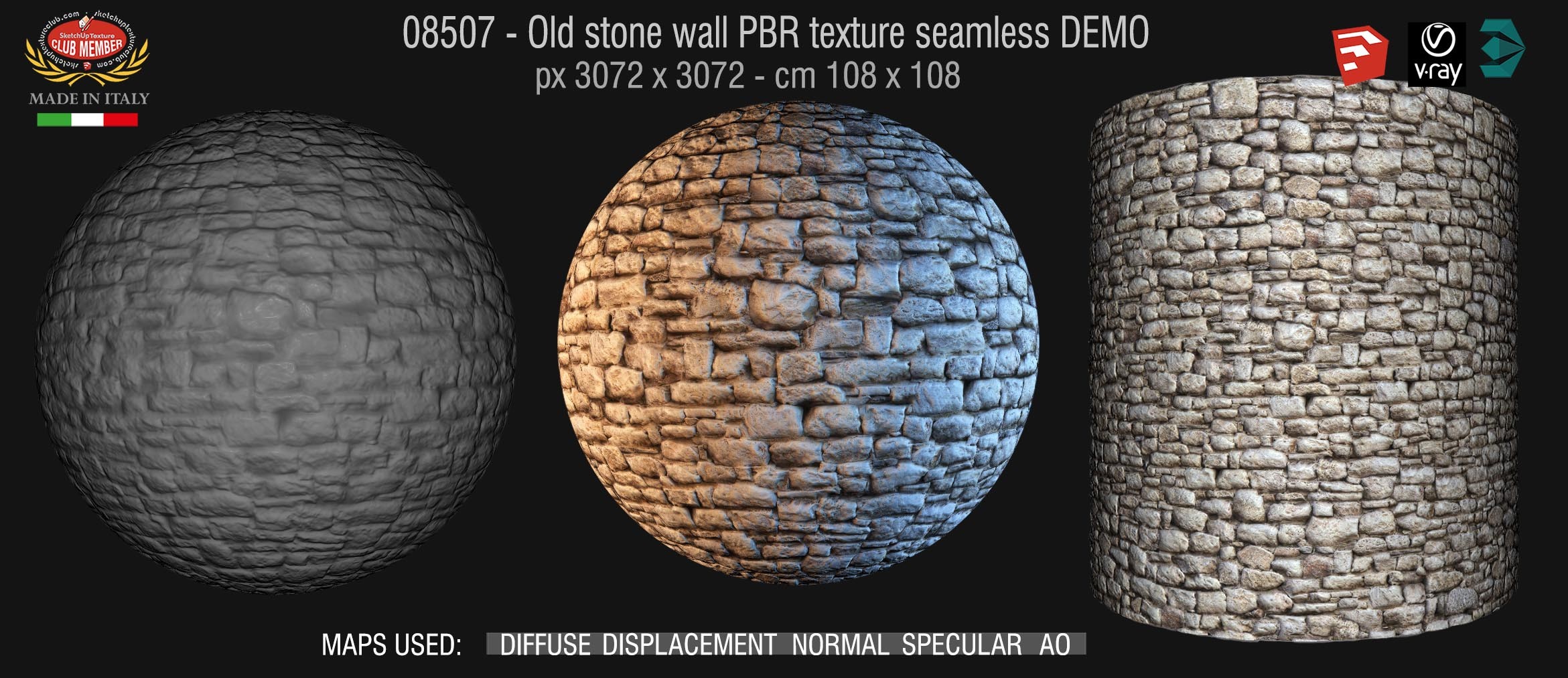 08507 Old stone wall PBR texture seamless DEMO