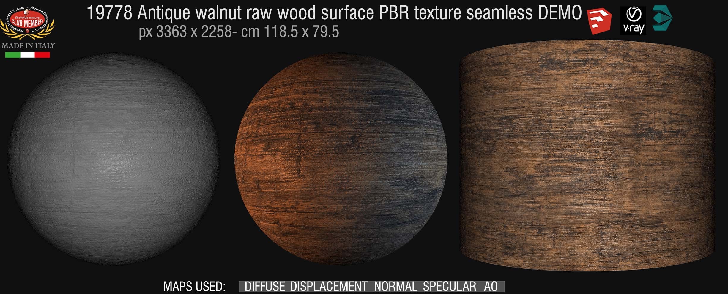 19778 Antique walnut raw wood PBR texture seamless DEMO